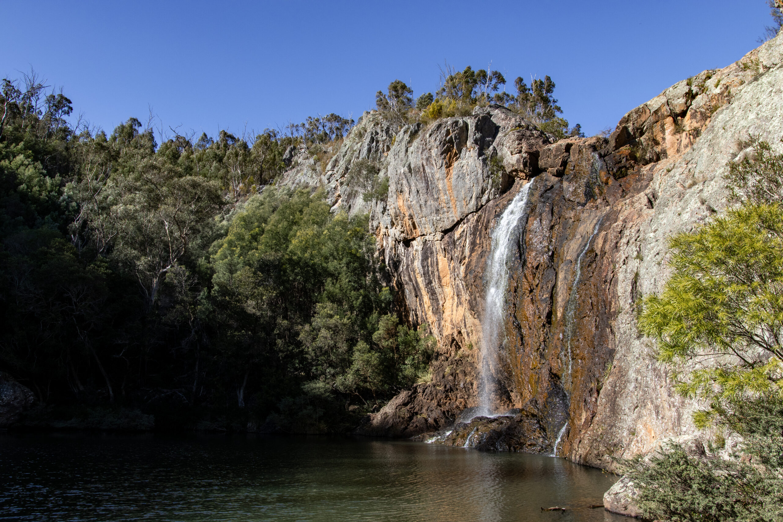 These picturesque falls in the south of Snowy River National Park can be reached year-round from Orbost along Moorsford Road. The route is a scenic drive with some gravel sections and is suitable for most vehicles under normal conditions.