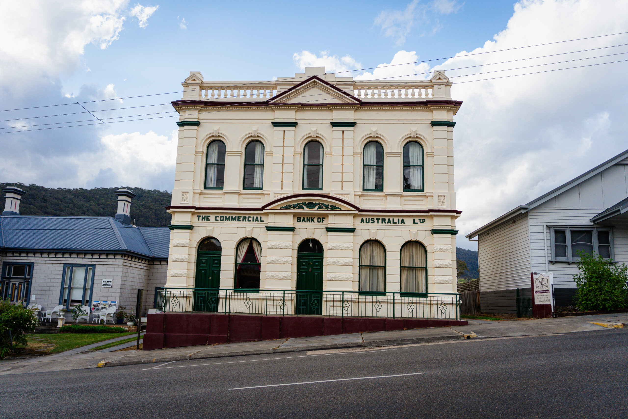 Other noteworthy buildings include the three-room Omeo State School built in 1875, the 1874 Old Standard Building (formerly the Temperance Hall) and the grand Commercial Bank of Australasia built in 1890.