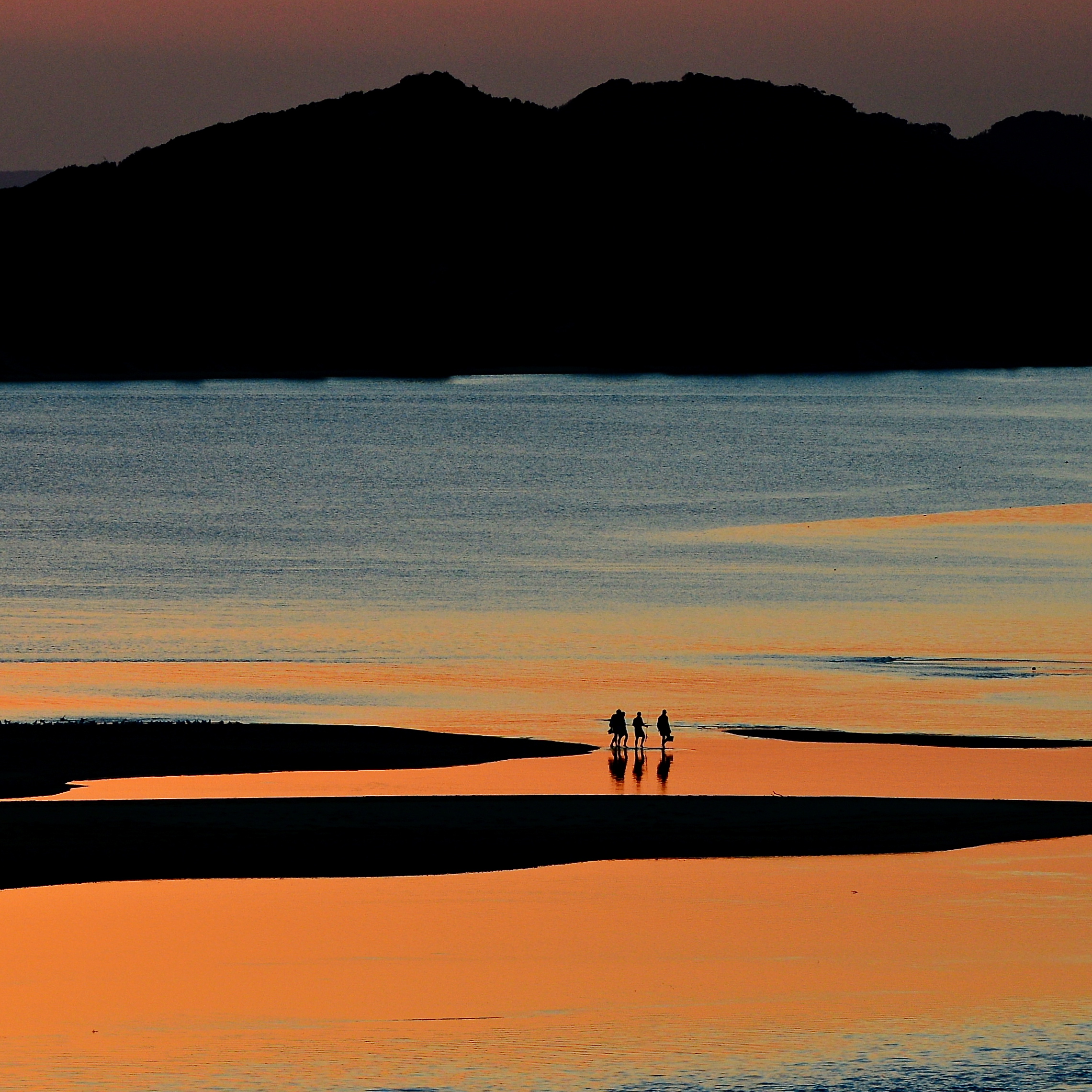 Wander barefoot on golden beach sands and explore the Salmon Rocks—rock formations sculpted by time and tide. As you enjoy the scenery, keep an eye out for sea eagles soaring overhead and the occasional whale during migration season (May–October) and during low tide, check out the rock pools and look for marine life like crabs and sea stars.